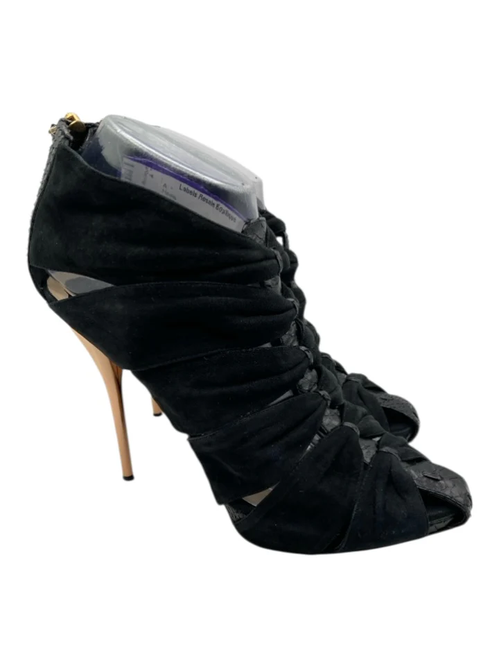 Christian Dior Shoe Size 38.5 Black & Rose Gold Suede & Python Back Zip Heels