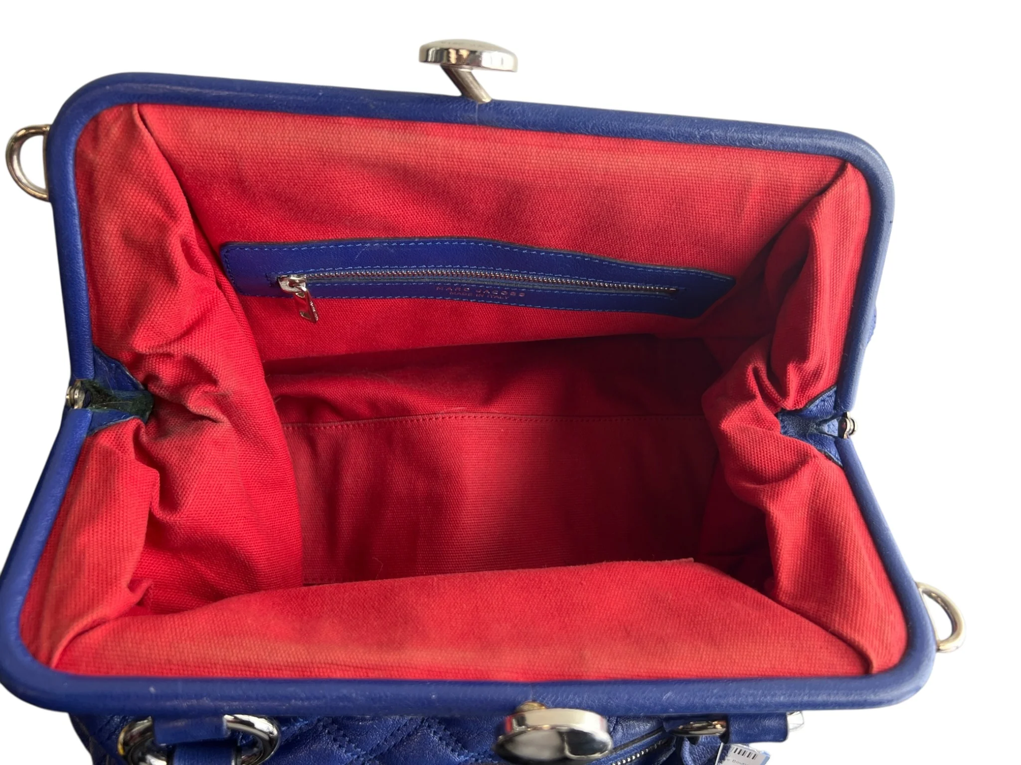 Marc Jacobs Navy Leather Kiss Lock Inside & Outside Pockets Cross Body Strap Bag