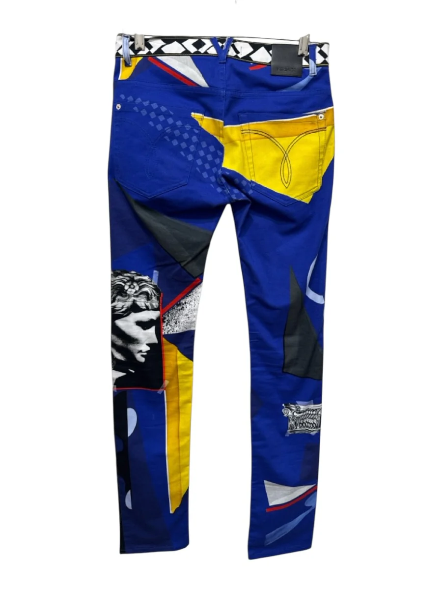 -70%Versace Size 29 Blue & Multi Cotton All Over Print Zip Fly Men's Pants—